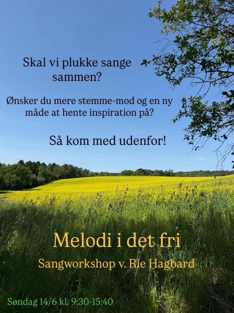 Vil du være med til en anderledes sangworkshop med kreativiteten i højsædet og inspirationen hentet udenfor? Så er ‘Melodi i det fri’ helt sikkert noget for dig! Denne dag vil vi gå på opdagelse i naturen omkring os og bruge de ting og sager, vi støder på, til at danne ramme for vores sangskrivning. Efter nogle timers ‘sangplukning’ og sangøvelser ude i naturen vil vi tage vores ideer med indenfor i mit hjemmestudie og således afrunde workshopdagen med indspilninger, kaffe og kage. Det bliver en fantastisk hyggelig og anderledes dag, fuld af idérigdom og inspiration.